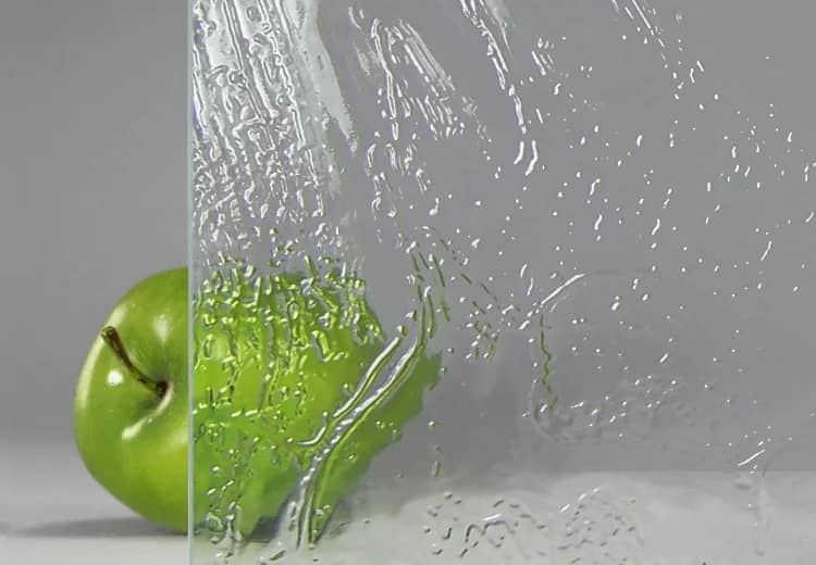 Из прочного закаленного стекла 10-12 мм. Выдерживает механическое воздействие силой до 440 кг